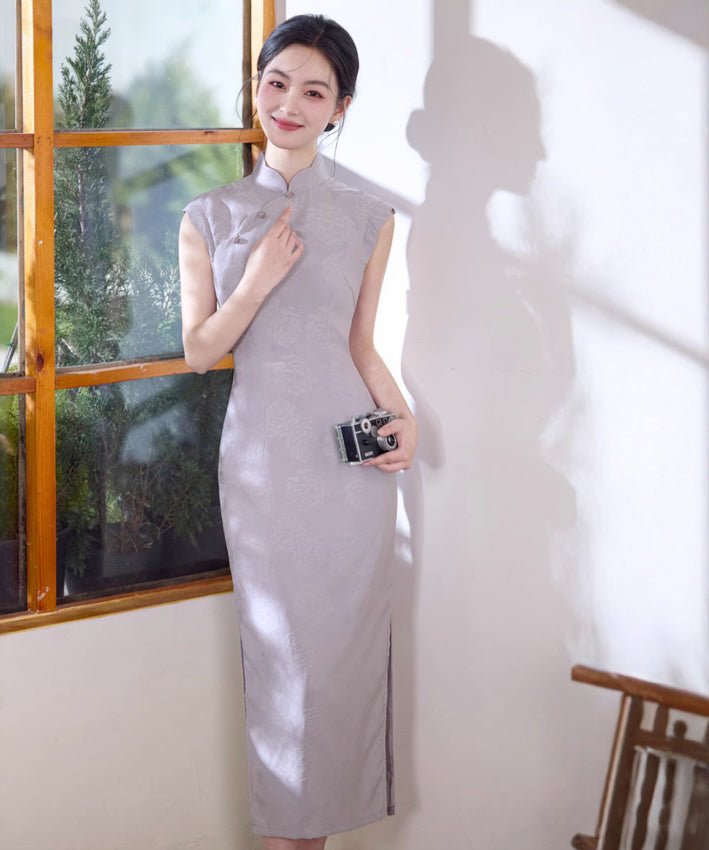 A modern cheongsam-inspired jacket fuses traditional Chinese heritage with sharp 21st-century tailoring. Crafted with precision, the jacket features a minimalist Mandarin collar, asymmetrical front closure, and a streamlined silhouette that nods to the iconic cheongsam while embracing contemporary structure