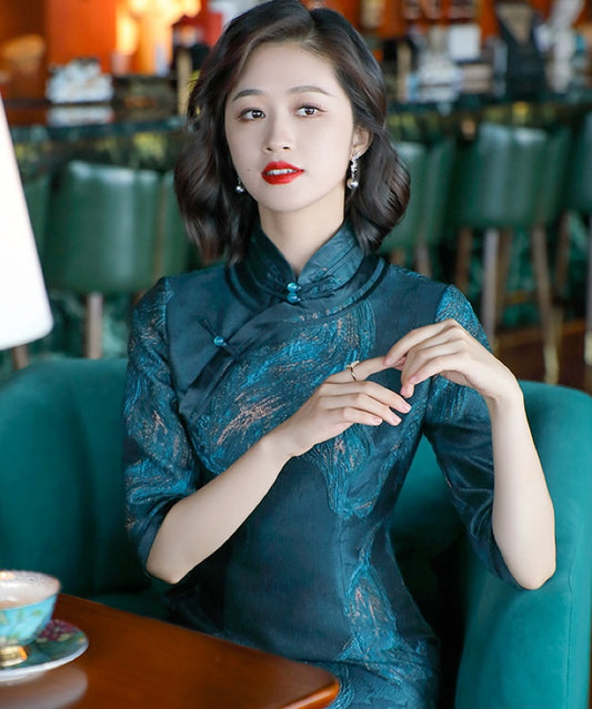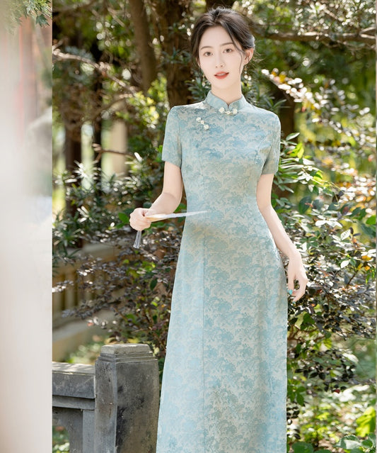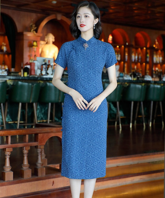 Lisa Patterned Blue Cheongsam