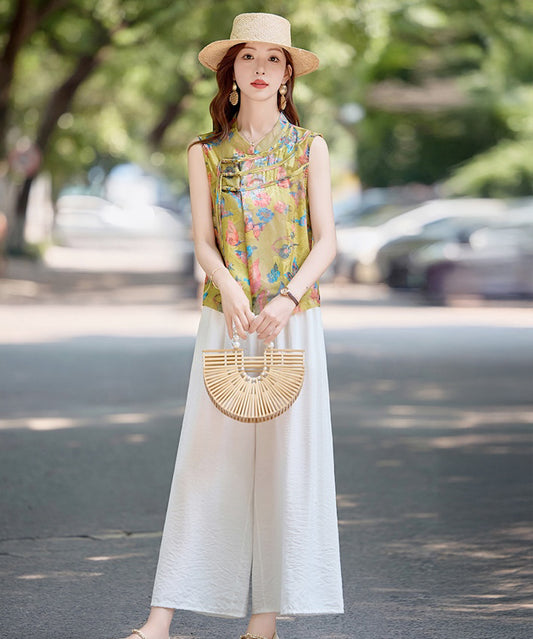 Mist Petal Ensemble Cheongsam Top Shorts Set