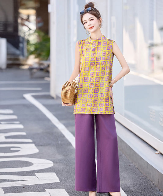 Feifei's Multicolor + Purple Pants Cheongsam Set