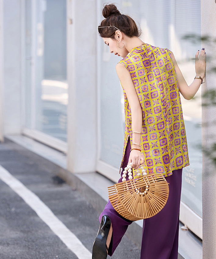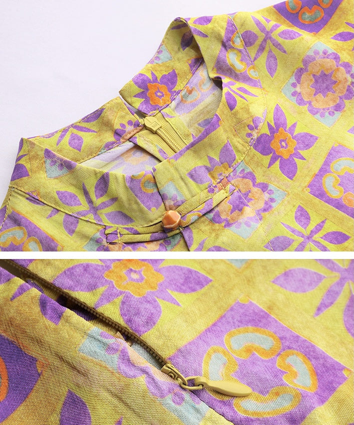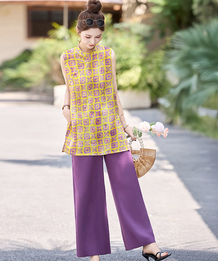 Feifei's Multicolor + Purple Pants Cheongsam Set