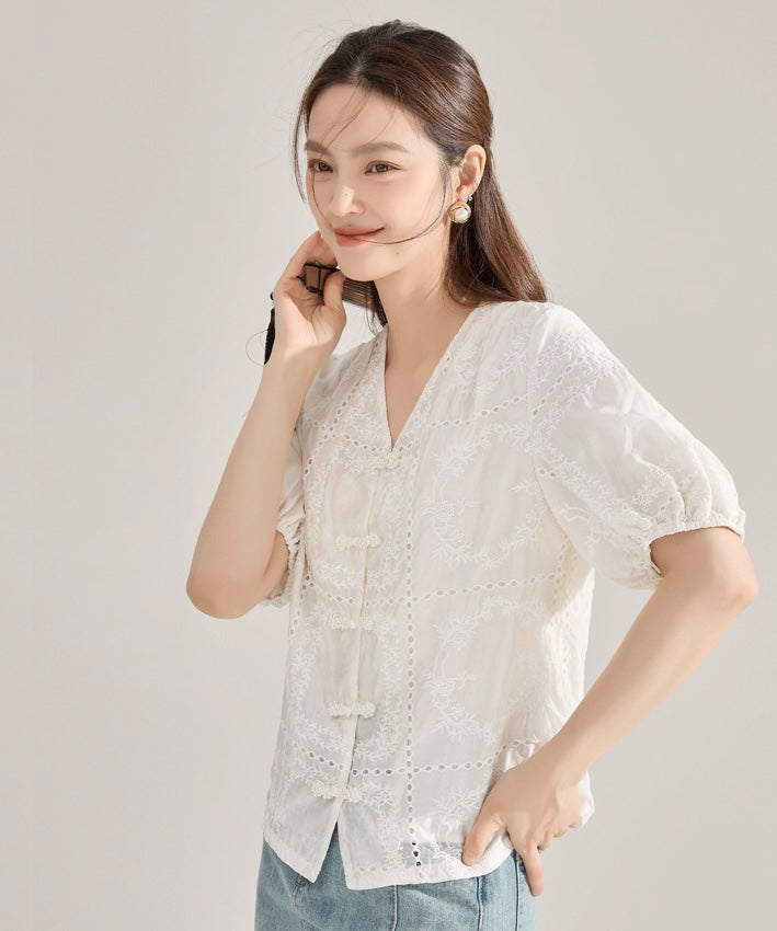 Gracelyn Eyelet Cheongsam Top