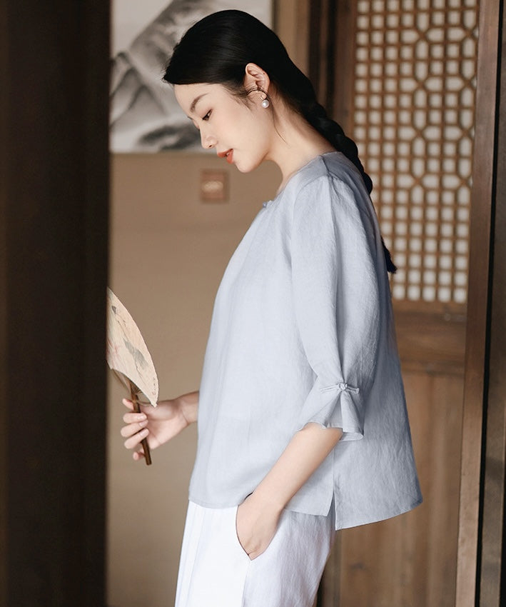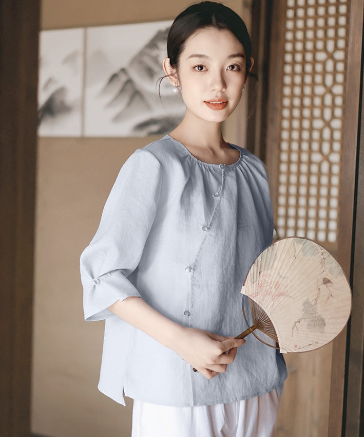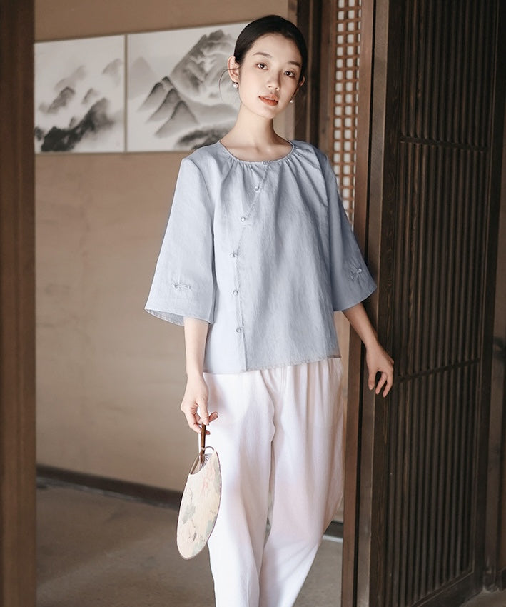 Kele Round-Neck Oriental Top