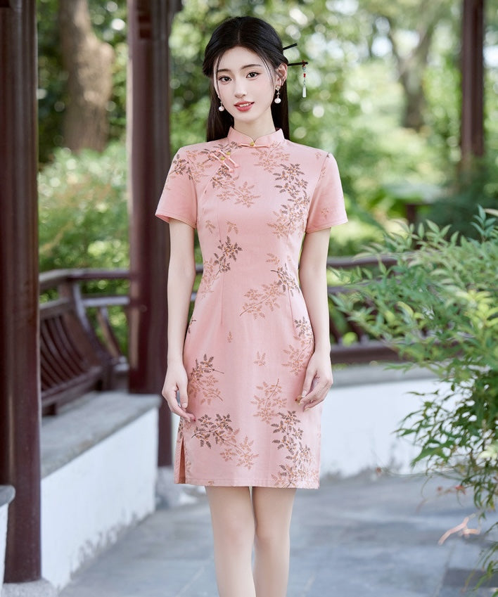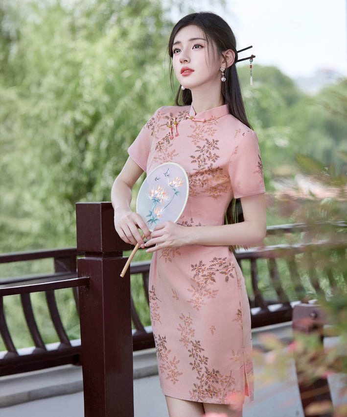 Meili Traditional Pink Short Cheongsam