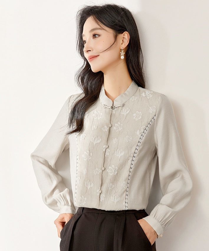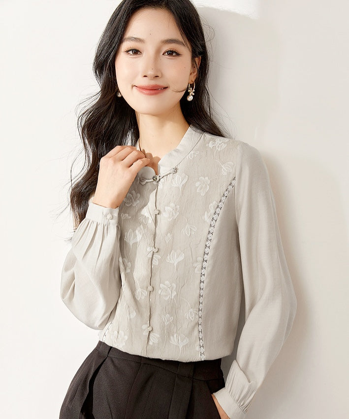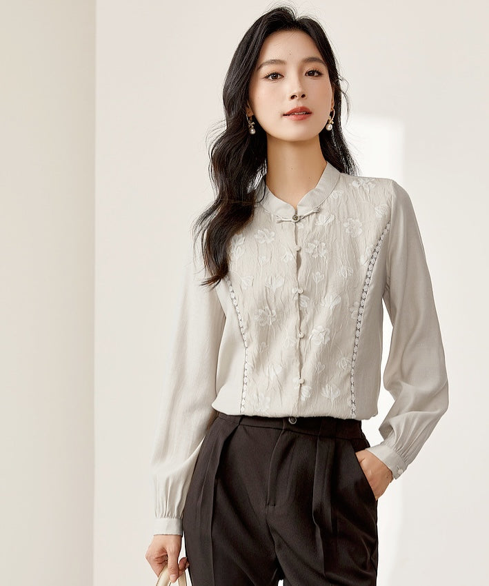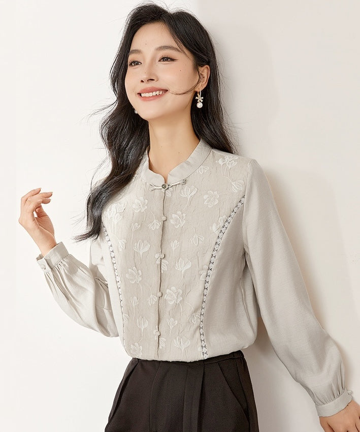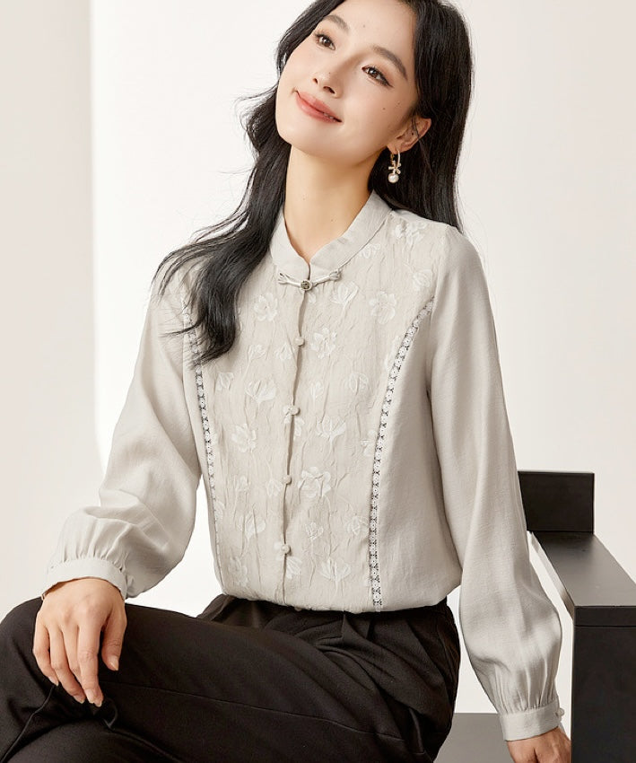 A modern cheongsam-inspired jacket fuses traditional Chinese heritage with sharp 21st-century tailoring. Crafted with precision, the jacket features a minimalist Mandarin collar, asymmetrical front closure, and a streamlined silhouette that nods to the iconic cheongsam while embracing contemporary structure