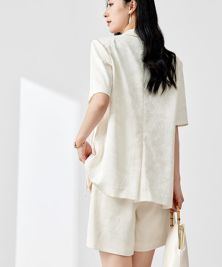 A chic blazer and shorts set that brings oriental charm into everyday dressing. With subtle patterns and clean lines, it takes tradition to another level — relaxed, effortless, and easy to style from day to night.