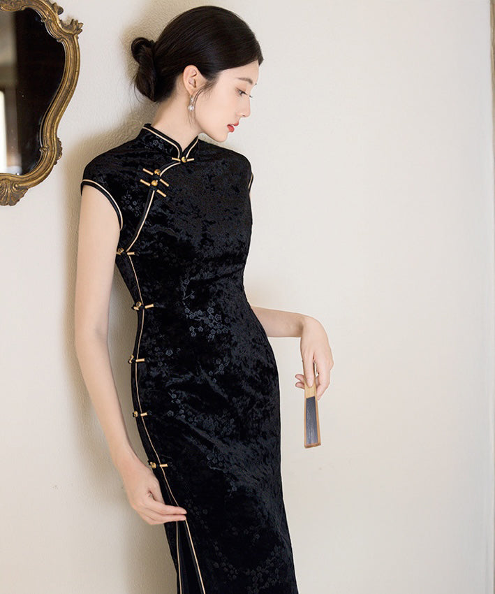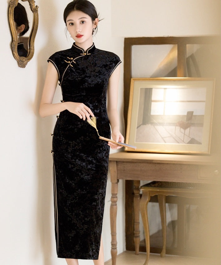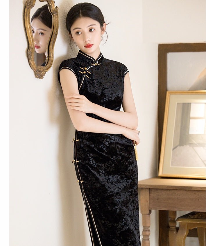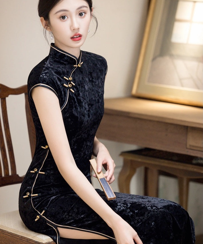 XiaXin Black Velvet Cheongsam